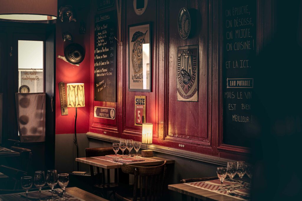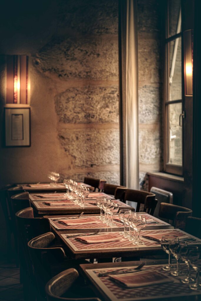Notre salle à l’étage offre une grande souplesse d’accueil, pouvant recevoir jusqu’à 20 convives autour d’une grande table, être organisée en tables de 8 à 10 personnes, ou accueillir jusqu’à 40 personnes dans un même espace, selon la configuration souhaitée. Pour des événements plus importants, l’ensemble du restaurant peut également être privatisé, en fonction de vos besoins.